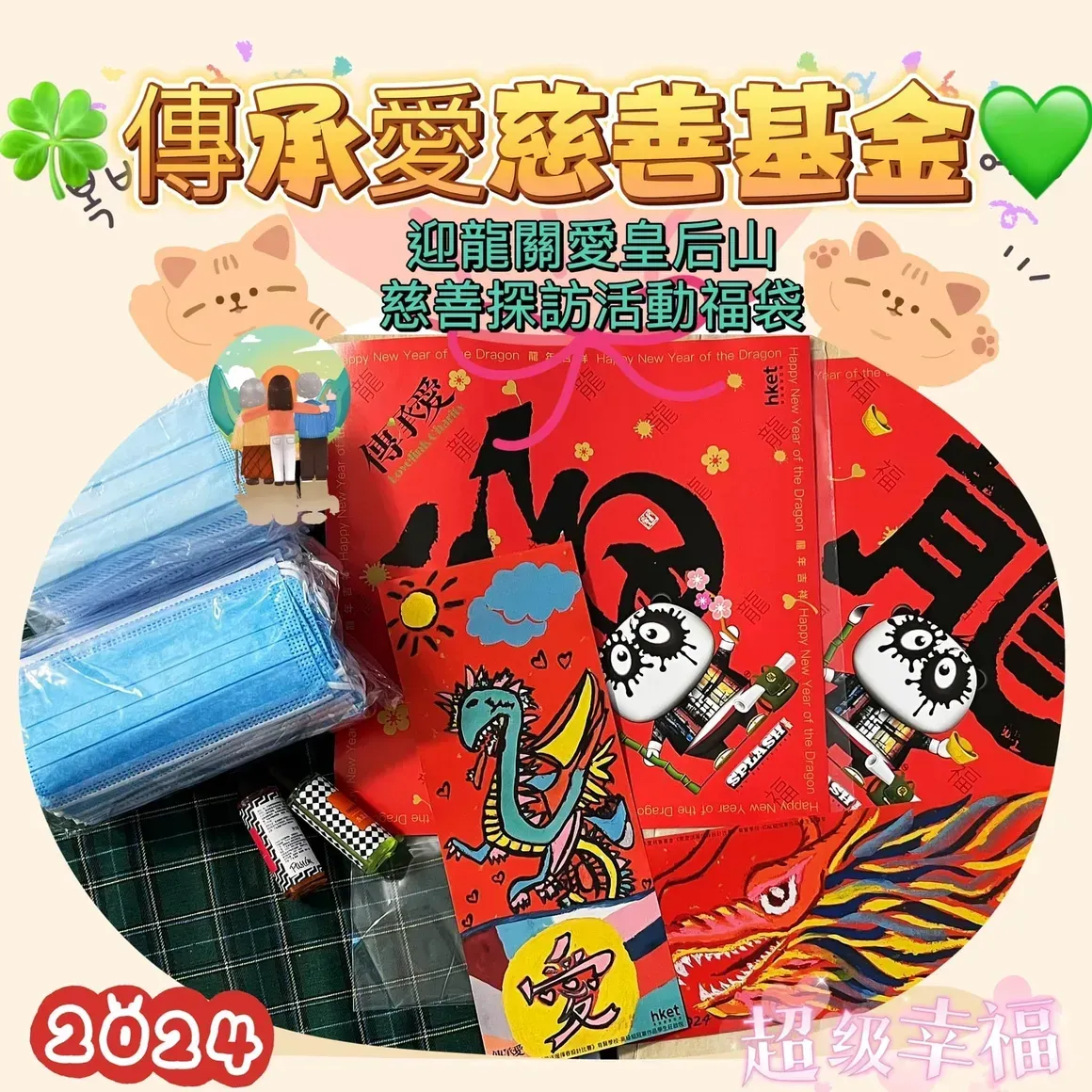 感恩「迎龍關愛皇后山」慈善探訪活動中,一行四十多位義工,包括: 育賢學校校長、參賽的學生和家長、我們的青年和成人義工,浩浩蕩蕩三代同堂一起傳承愛蓄勢待發,將藝術融入關愛,並送出「十全十美傳承愛福袋」予每戶探訪的獨居和雙獨長者家庭。